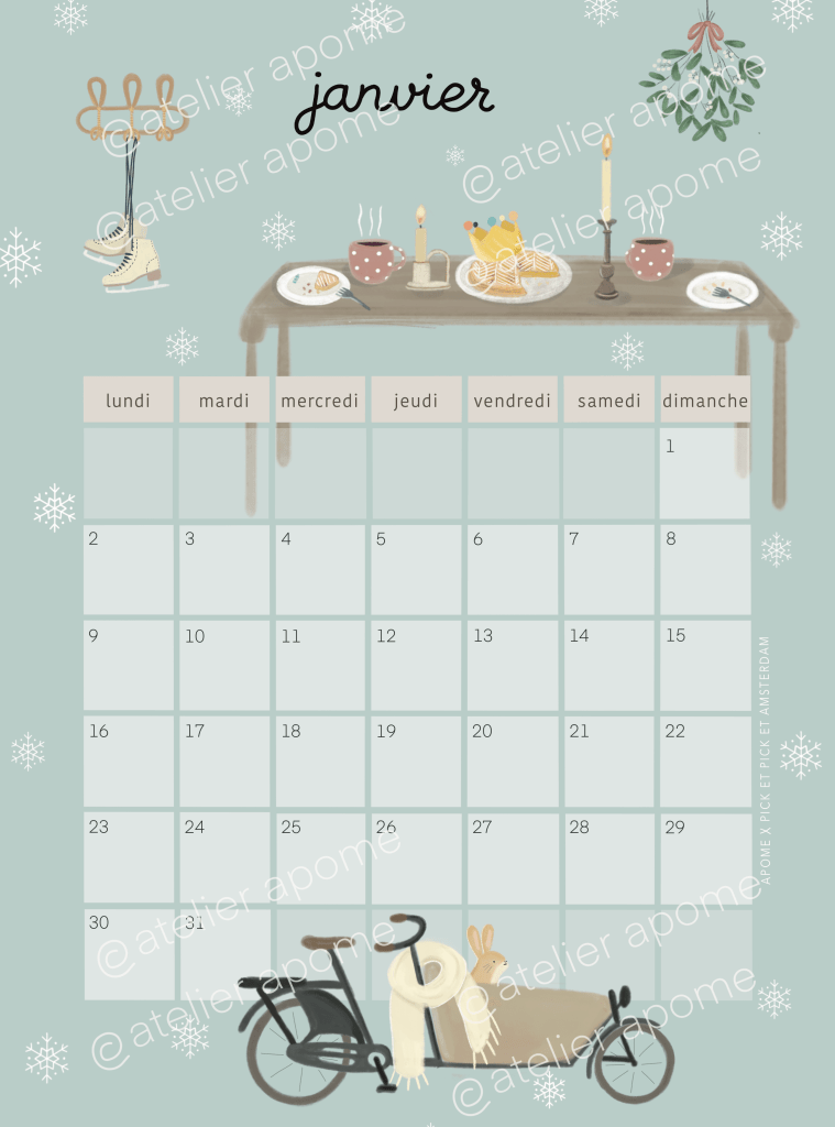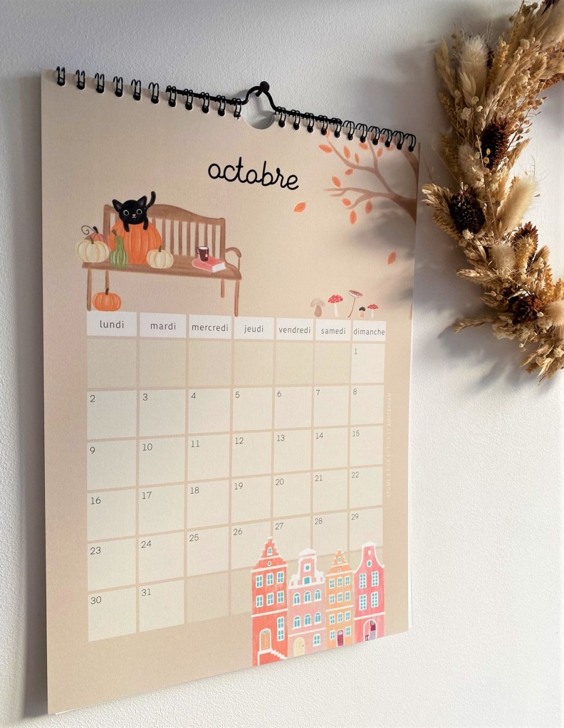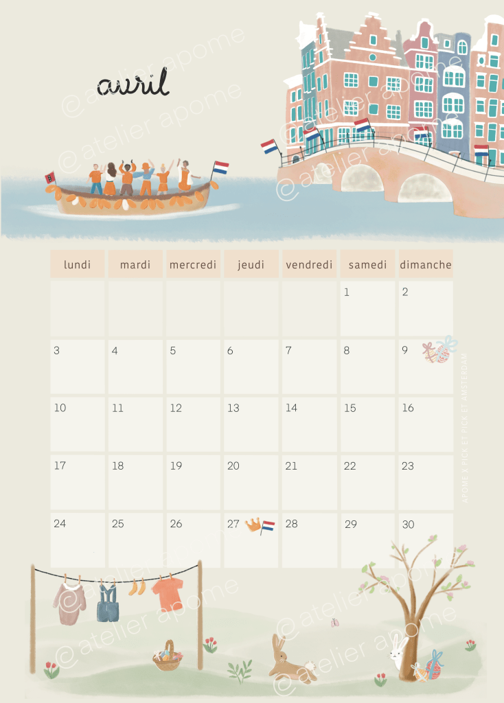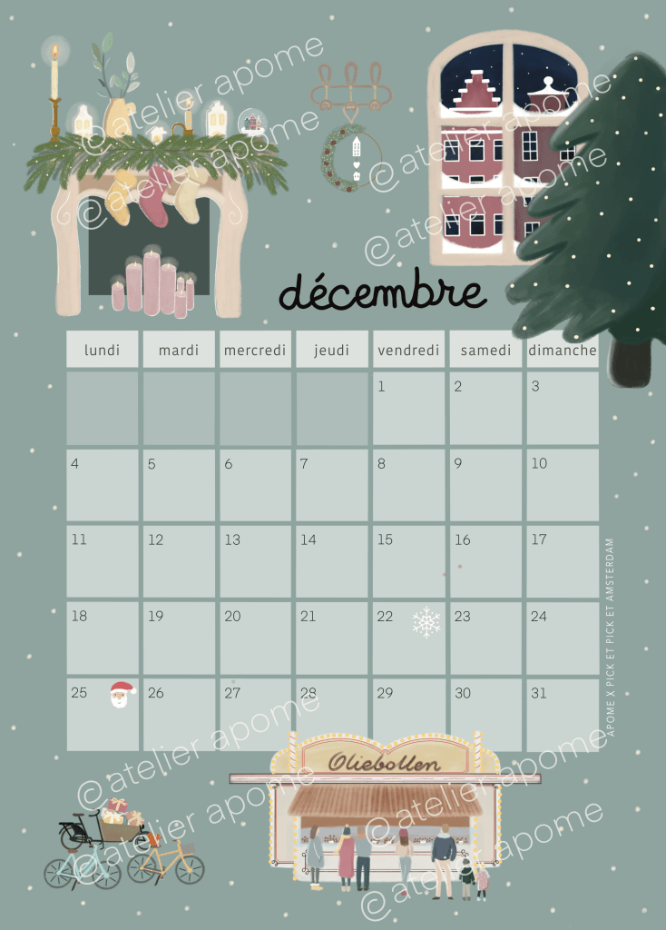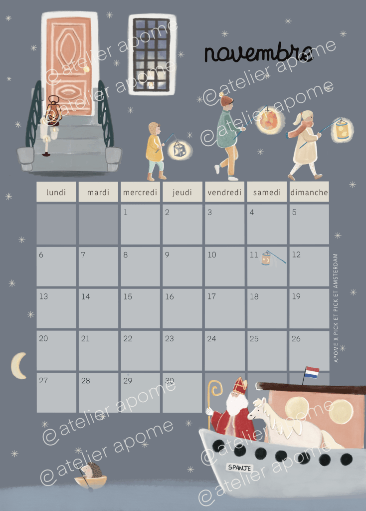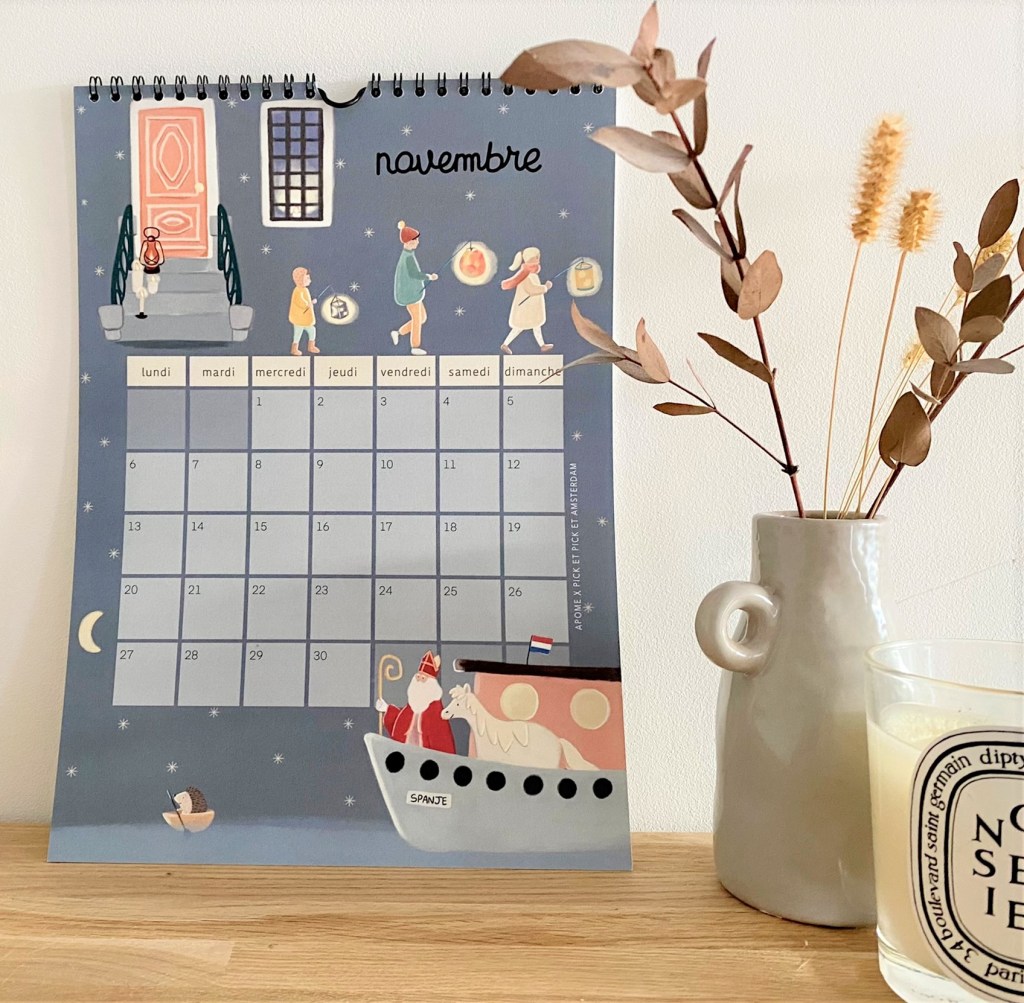 That inspired me this calendar, the first one I am designing in my illustrator career, Inside this calendar I wanted to show what I love about netherlands traditions with kids, from Koeningsdag to Sint Maarten or Tulip fields, you’ll find a new thema every month to warmly decorate your home.