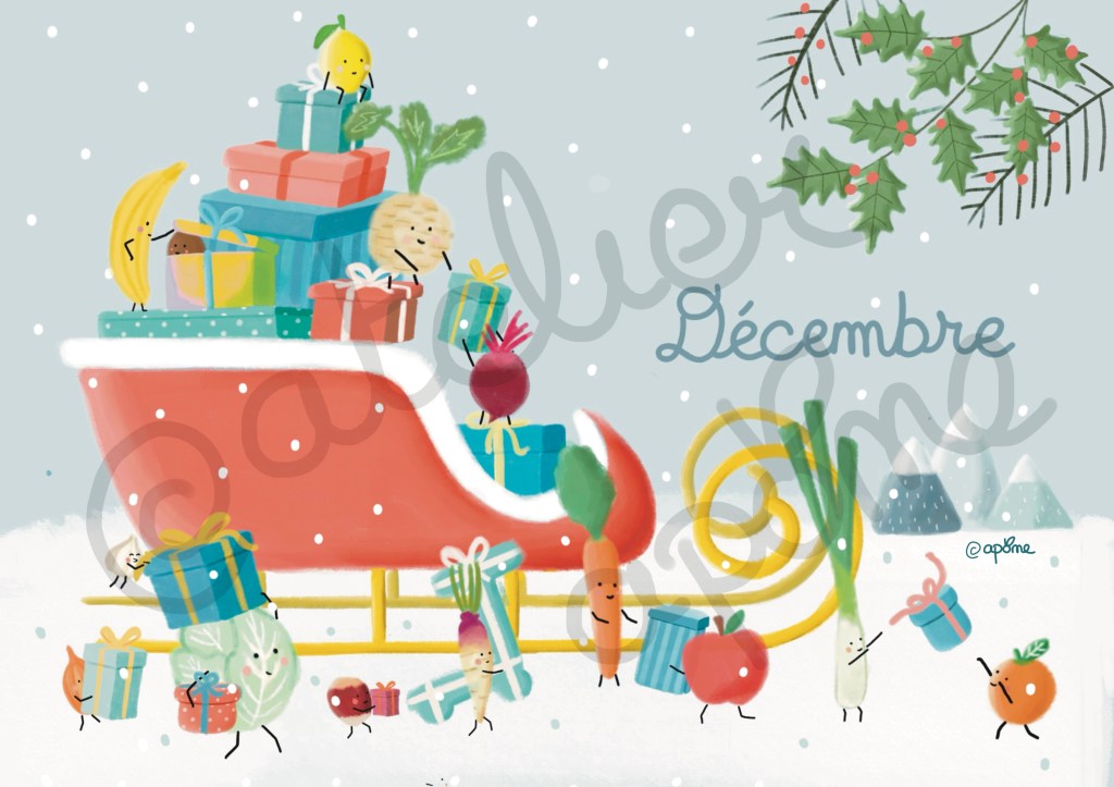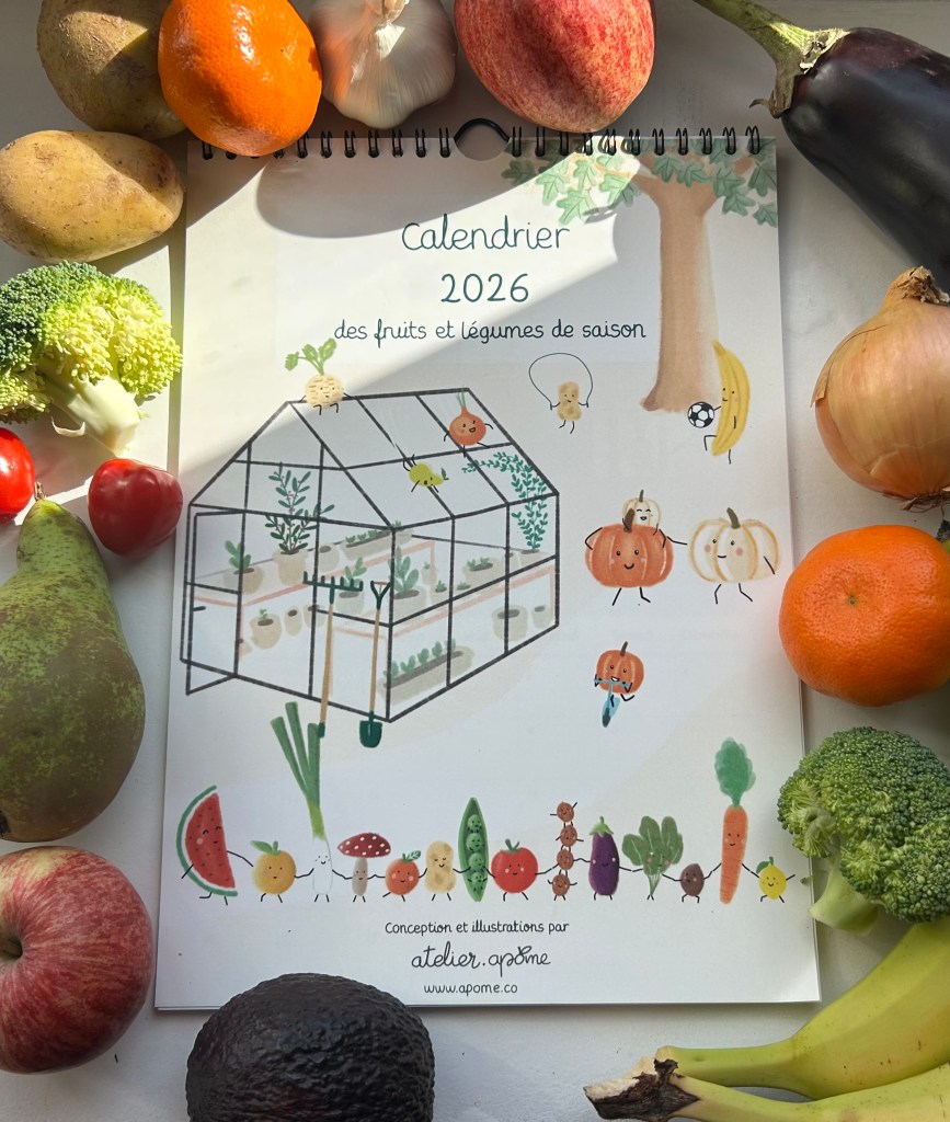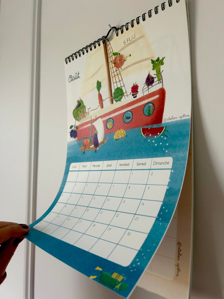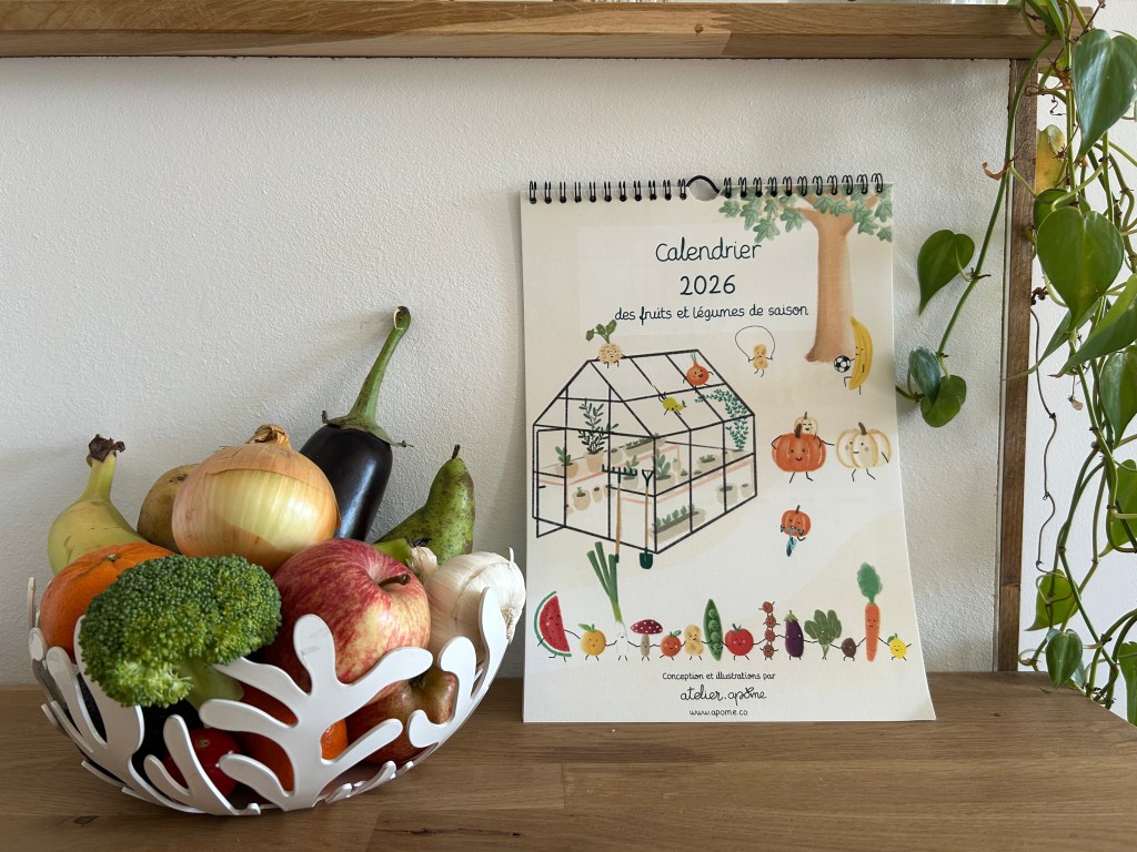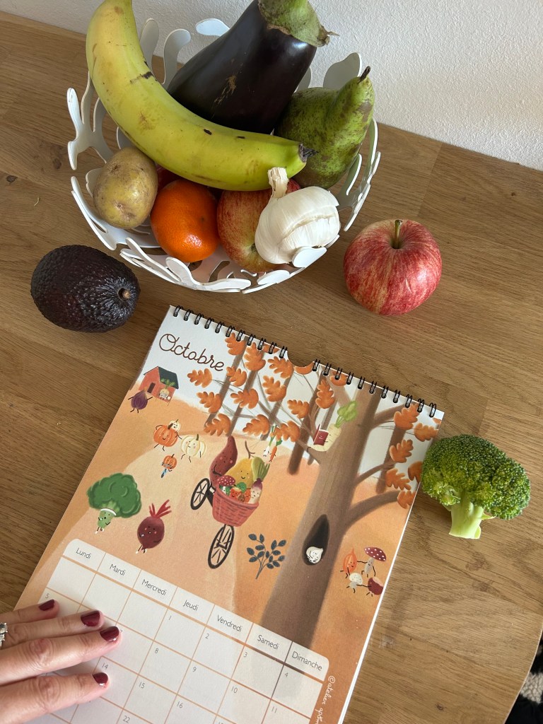 Cette année j’ai eu envie de dessiner un calendrier à la fois joli et ludique pour les enfants afin de leur apprendre à mieux consommer et prendre soin de notre santé et de notre environnement.