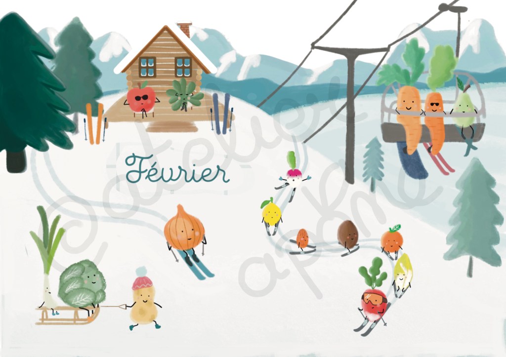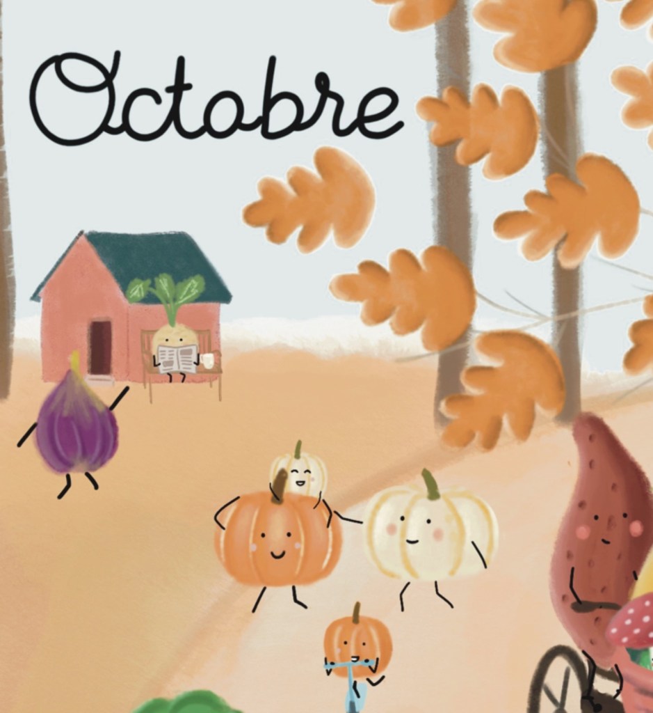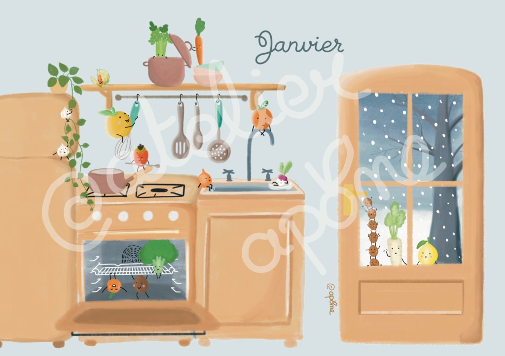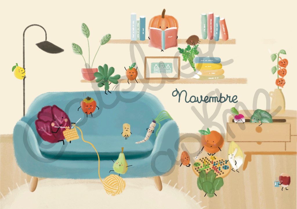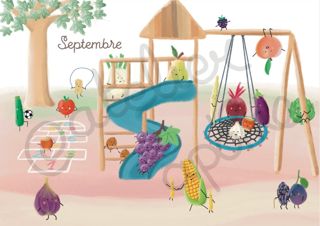 Cette année j’ai eu envie de dessiner un calendrier à la fois joli et ludique pour les enfants afin de leur apprendre à mieux consommer et prendre soin de notre santé et de notre environnement.