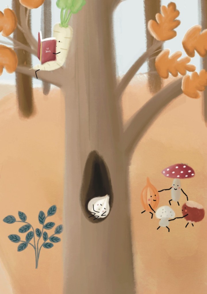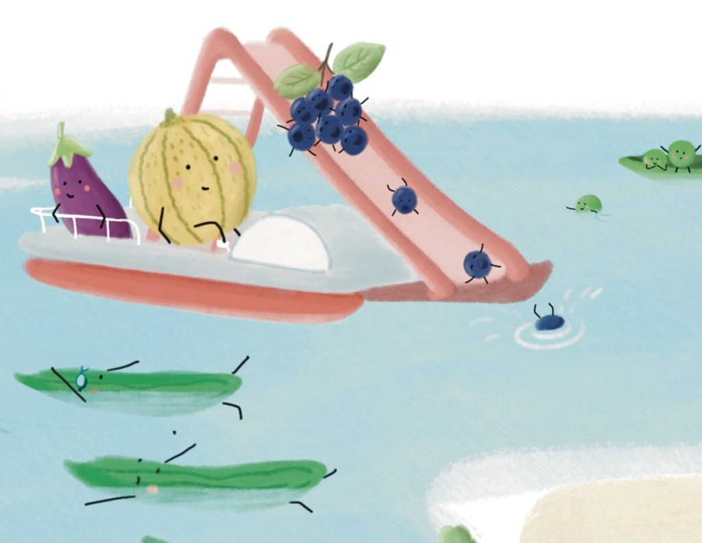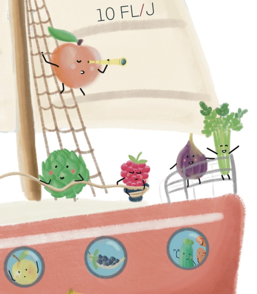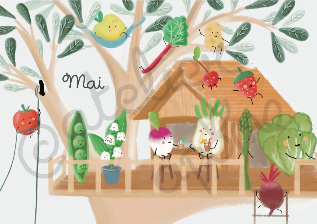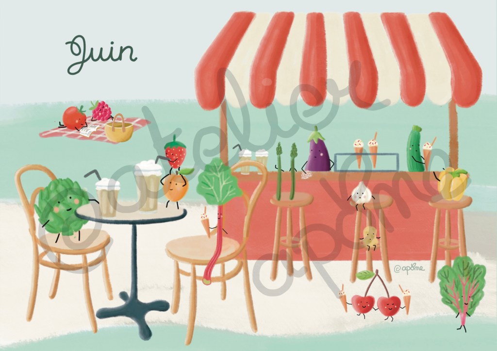 J’ai adoré travailler sur ces thématiques de l’alimentation et du respect de la planète, j’espère pouvoir sensibiliser d’autres personnes, petits et grands, à travers mes illustrations !