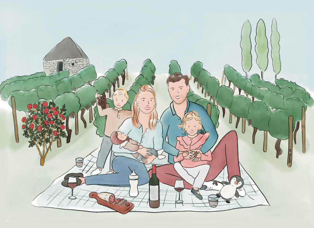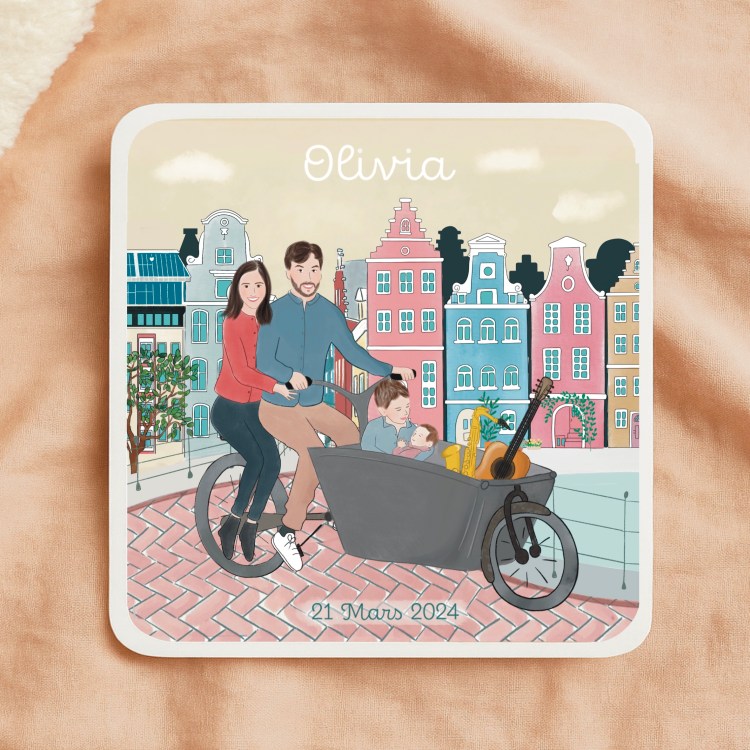 - image principale : coût d’une illustration personnalisée (92€ pour le fond entièrement sur mesure et 10 € pour chaque personne dessinée)