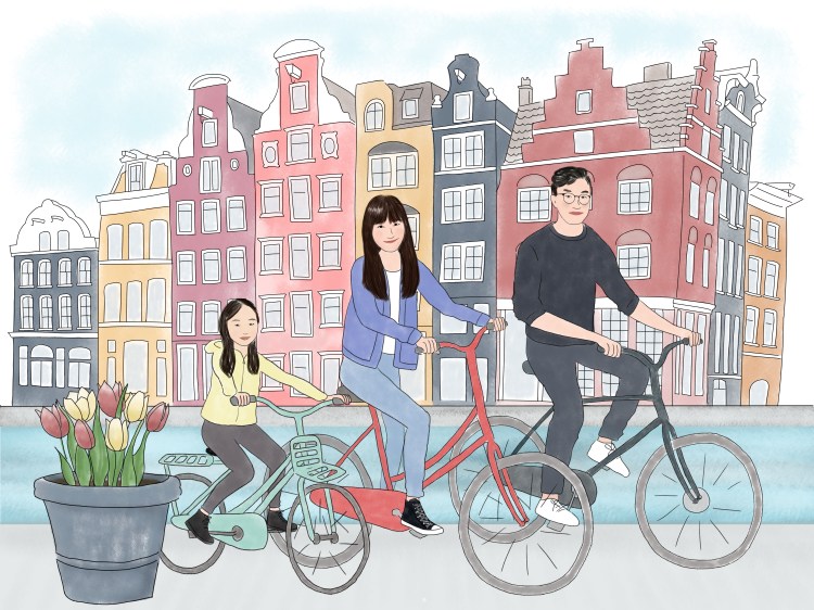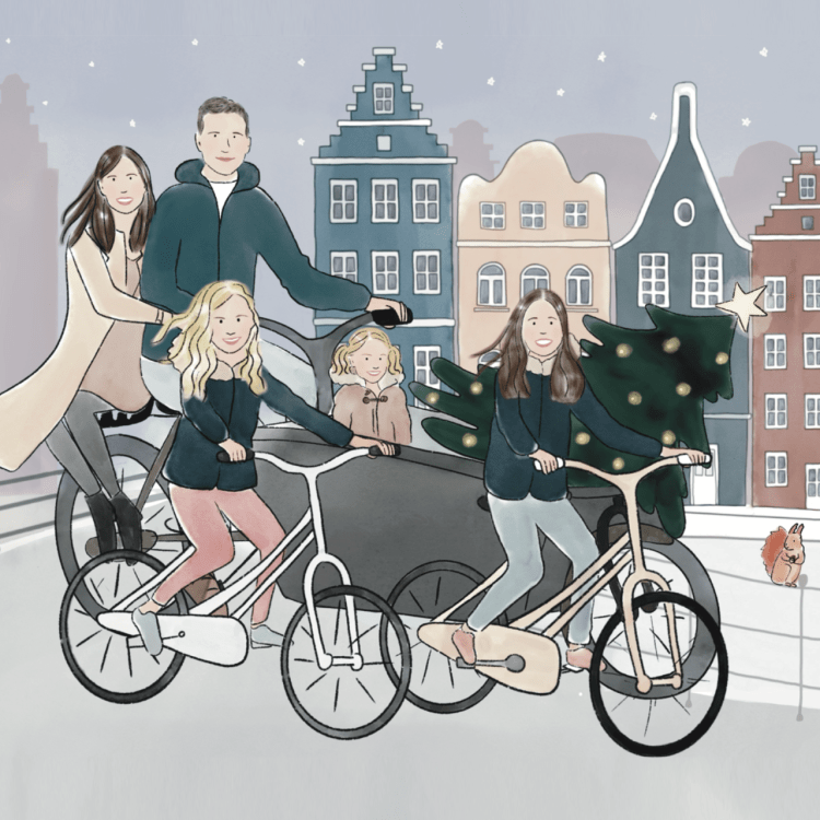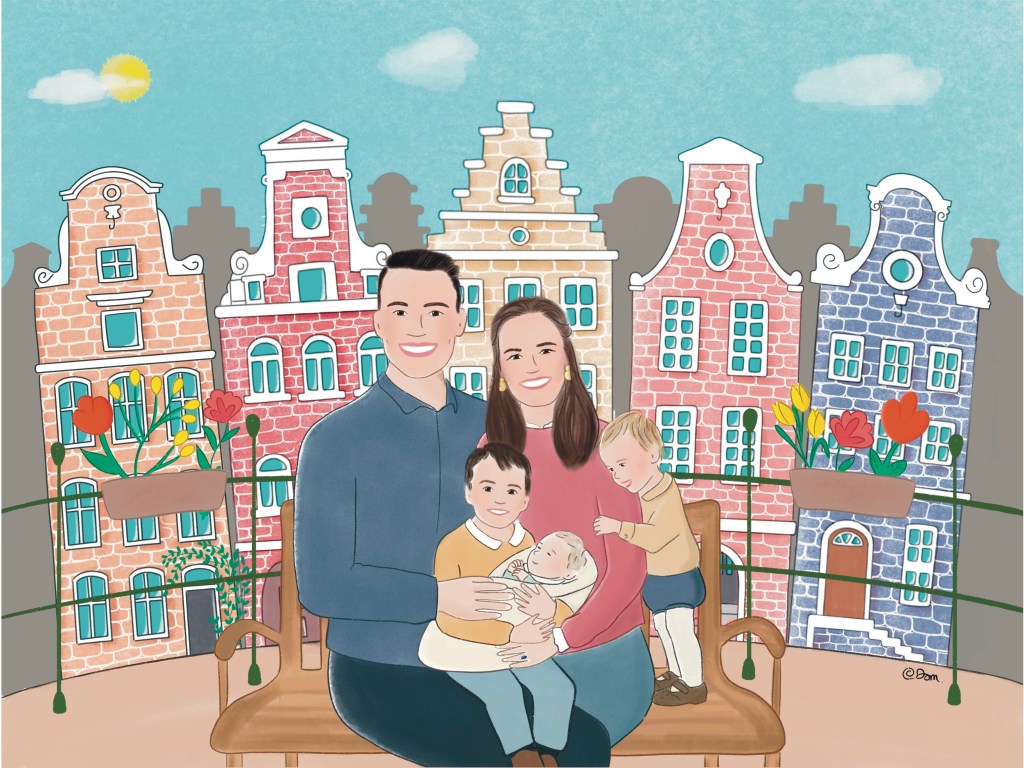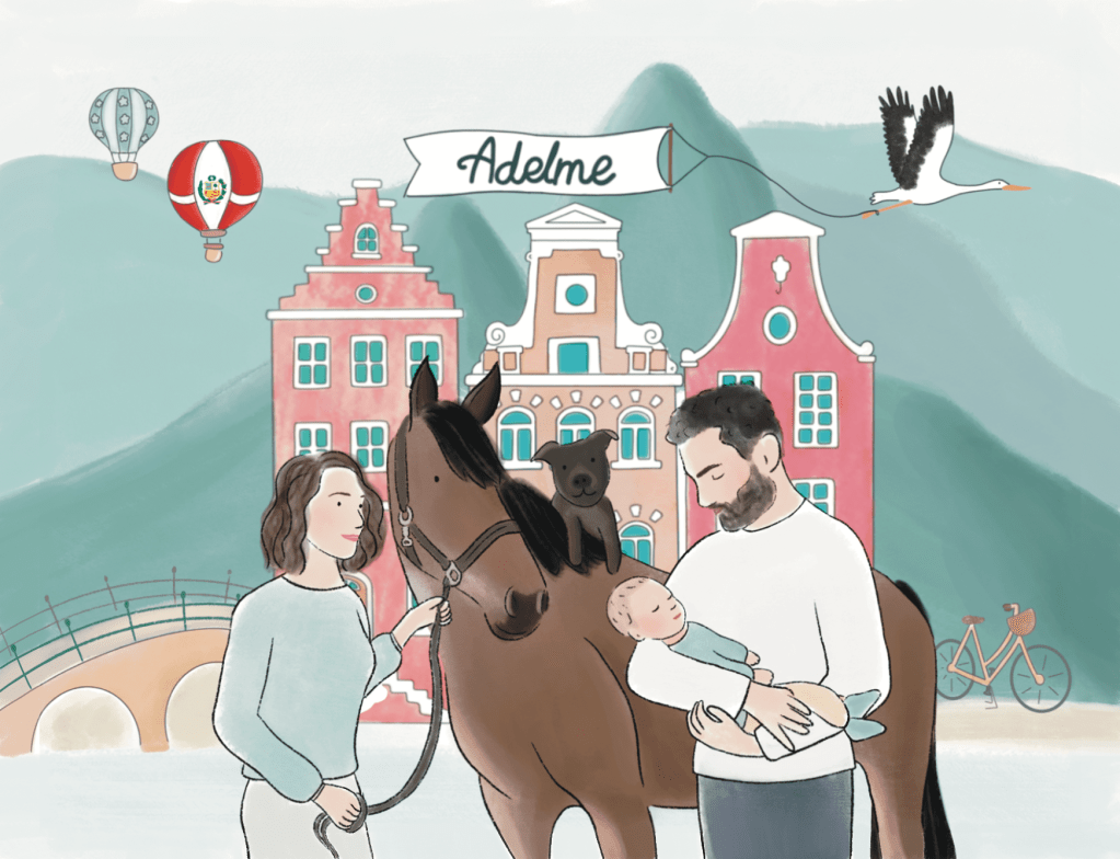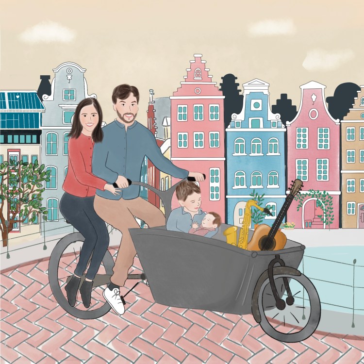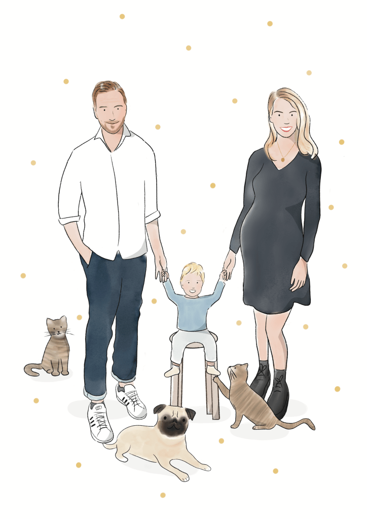 Je crée votre portrait entièrement sur mesure, j’illustre le fond de votre choix, votre endroit préféré, votre maison, un paysage, un lieu imaginaire, tout est possible !