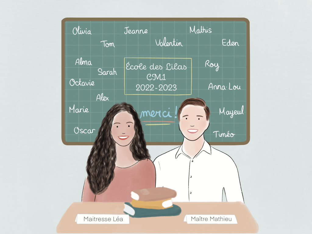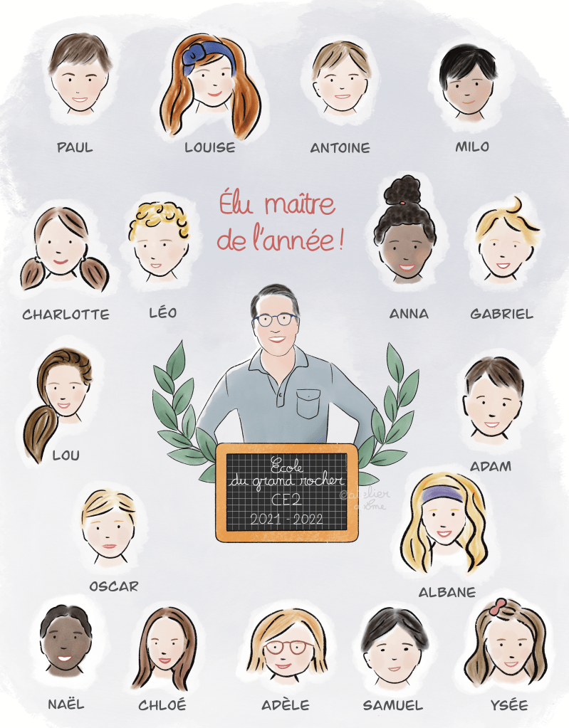 Illustration du ou des professeurs + tous les élèves 8€ par personne dessinée