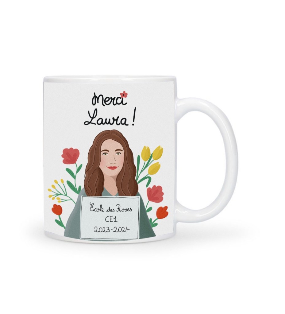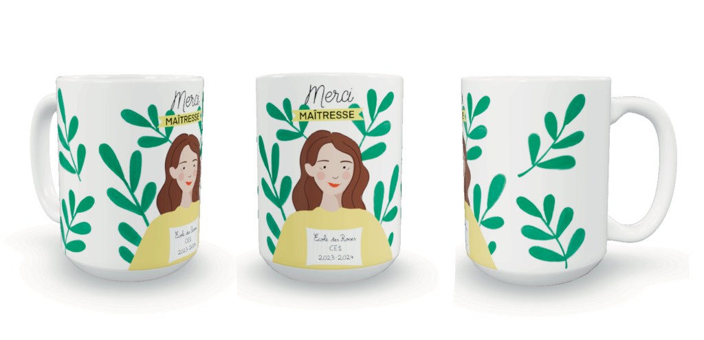 | Ce prix comprend : – Illustration personnalisée d’un professeur ou personne de votre choix + 8€ par personne suppl;ementaire à ajouter sur le dessin. – Choix du texte – Choix de la couleur et du design de fond – Impression sur Mug – Mug Blanc en Céramique entièrement imprimé sur le pourtour Hauteur : 11,5 cm |