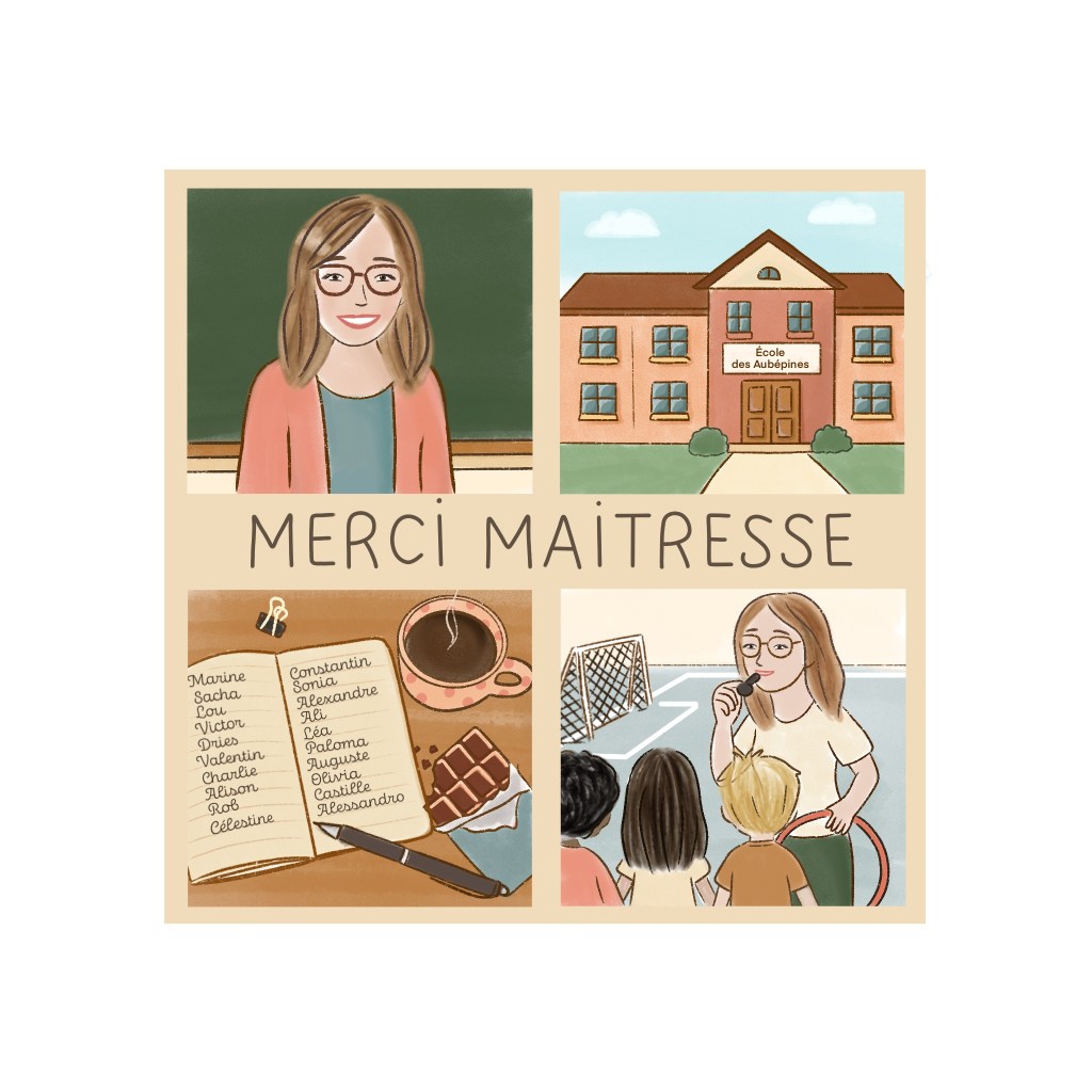Une attention délicate qui résume en 4 images le quotidien de votre professeur préféré et ce pourquoi vous tenez tant à le remercier.