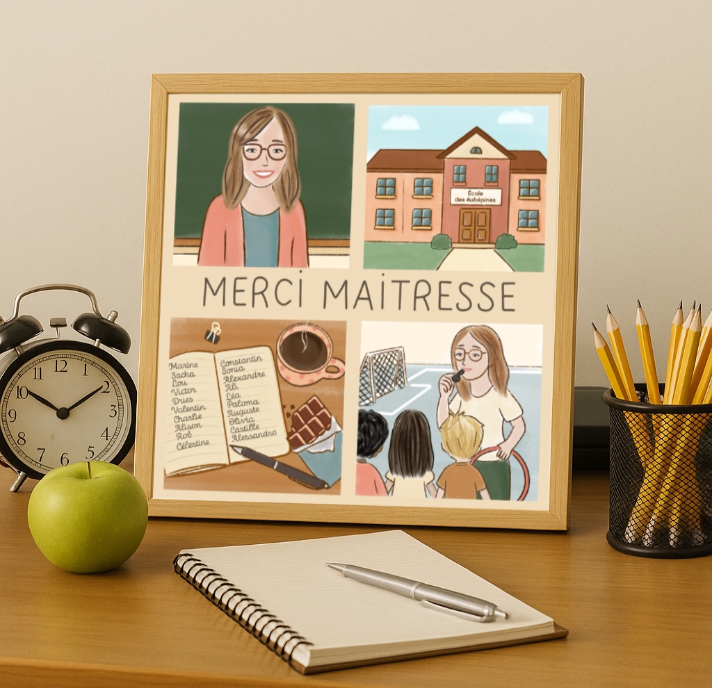 Le cadeau parfait à offrir aux professeurs, nounous, maîtresses, maîtres, afin de leur laisser un joli souvenir de cette année scolaire passée avec vos bambins !
