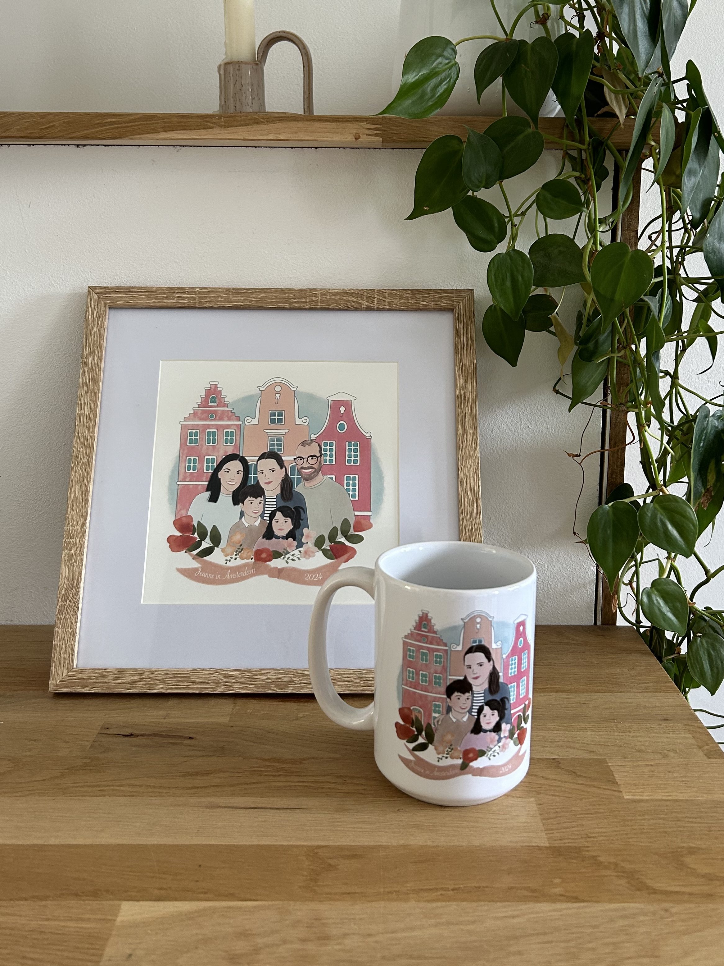 Portrait entièrement personnalisé, chaque personne sera représentée dans un style illustré pour une belle illustration à encadrer.